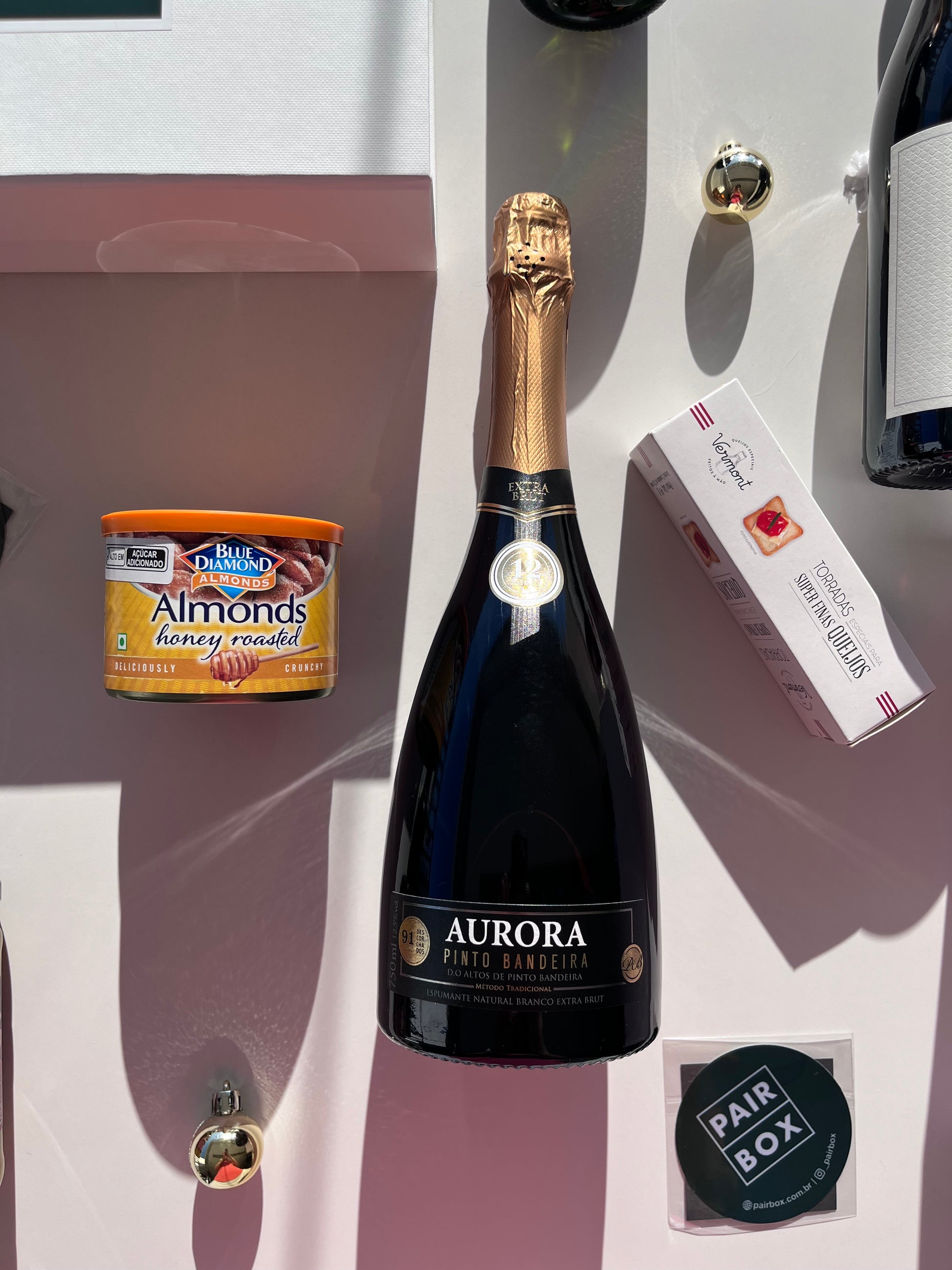 Este kit traz o Aurora Pinto Bandeira Extra Brut, um dos espumantes brasileiros mais premiados e expressivos, elaborado no coração de uma das regiões mais especiais do país para borbulhas: Pinto Bandeira, na Serra Gaúcha.